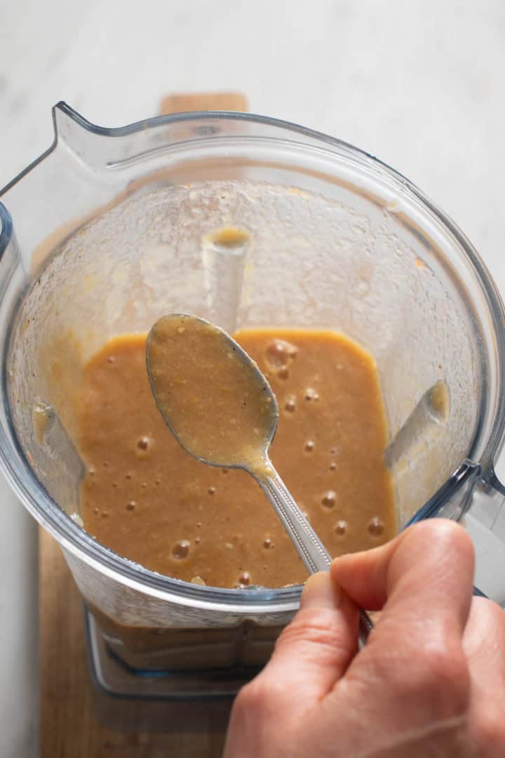 - Blend Until Completely Smooth. A good mole sauce should be silky and smooth. Since this recipe contains dried chiles, seeds, and tortillas, it needs to be blended thoroughly. A high-powered blender works best, but if using a standard blender, blend in batches for at least 1–2 minutes per batch. If the sauce still feels grainy, strain it through a fine-mesh sieve for a smoother consistency.